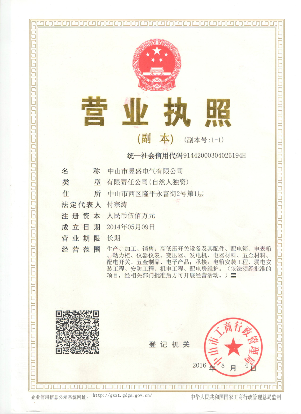 中山市昱盛電氣有限公司